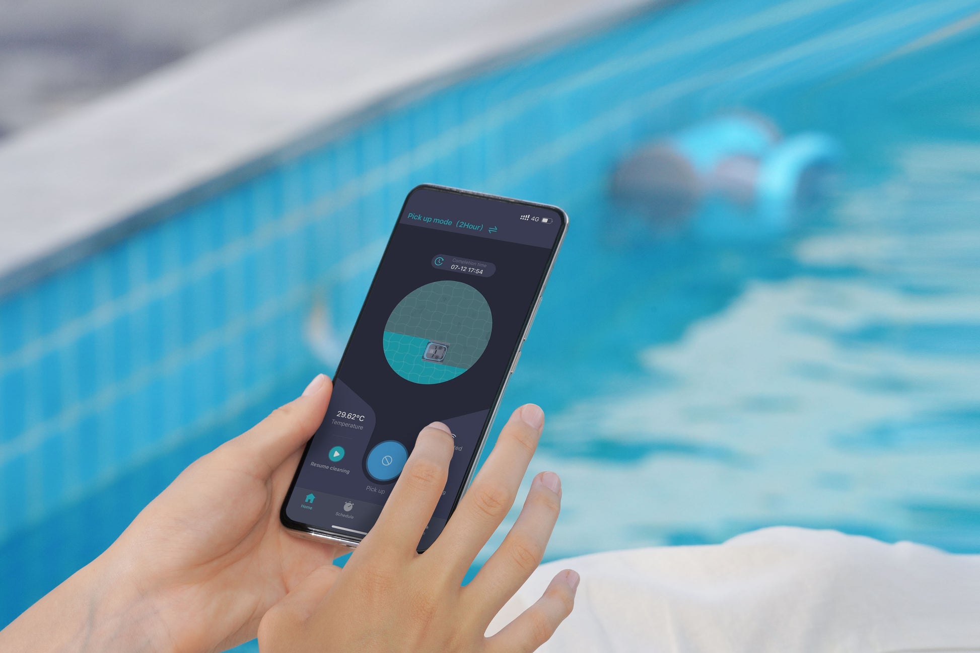 A CM600-hoz tartozó mobil applikációval távolról is üzemeltethetjuk a robotot, vagy beállíthatunk időzített takarítást is, továbbá egy kattintással visszahívható a medence szélére, így a kezelőnek nem kell bemennie érte a vízbe.