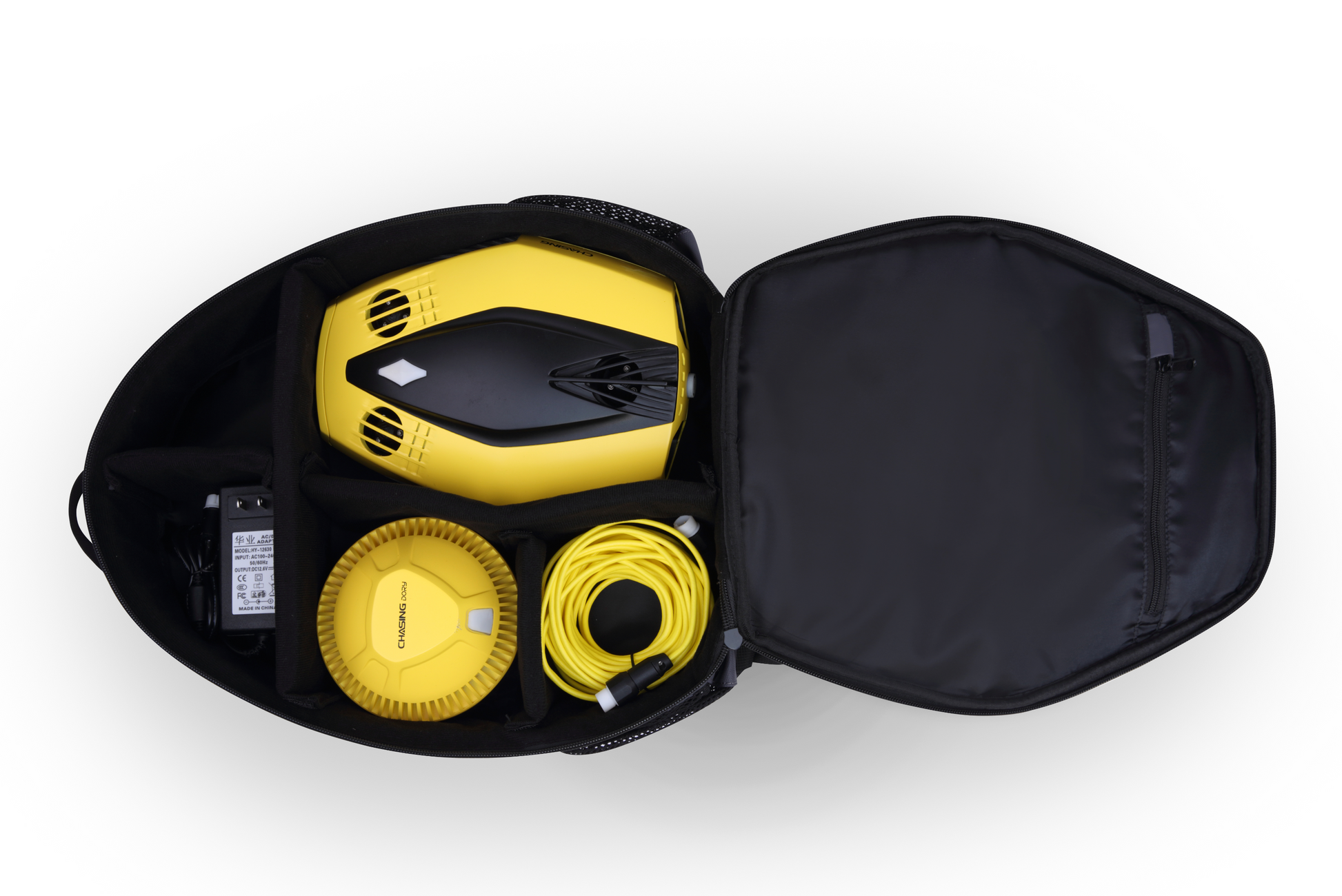 A CHASING DORY FLASH PACK segítségével még többet fedezhetsz fel! Az alapcsomaghoz képest a FLASH PACK tartalmaz egy kényelmes hátizsákot, amiben bárhova elviheted kedvenc víz alatti drónodat, valamint egy fizikai távirányítót is, amivel még pontosabban irányíthatod DORY-t!