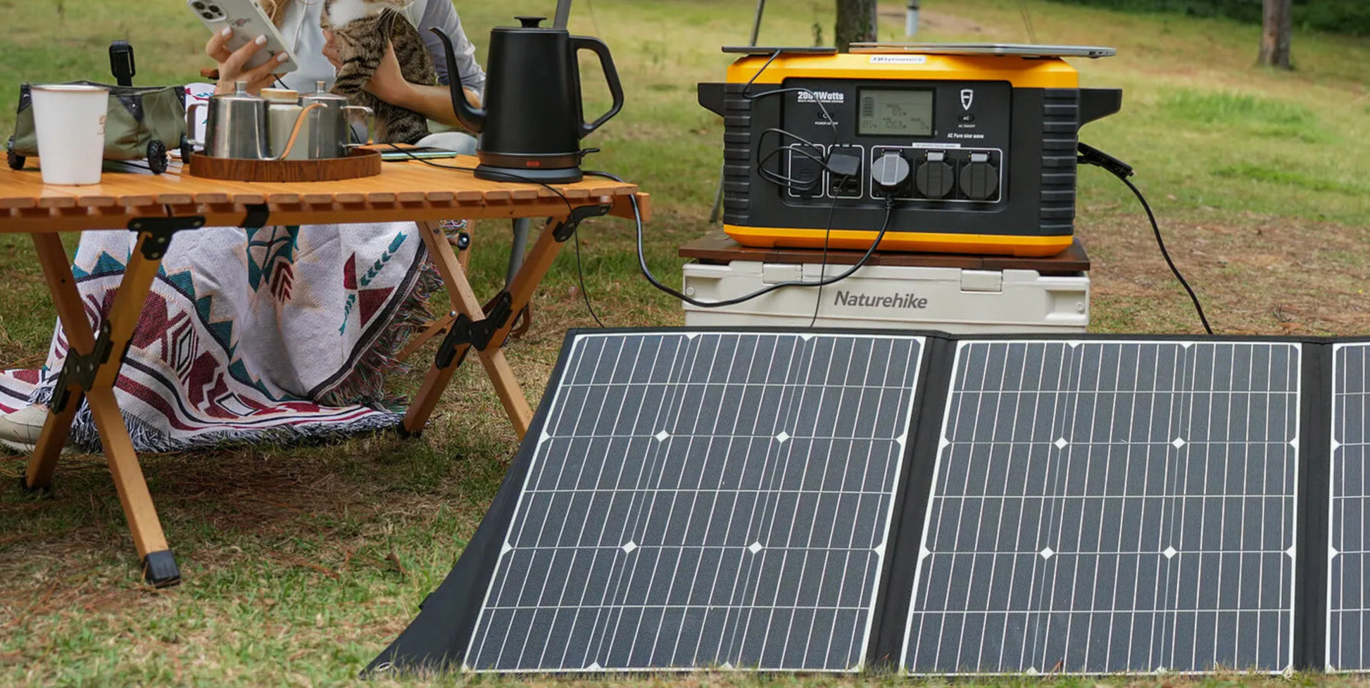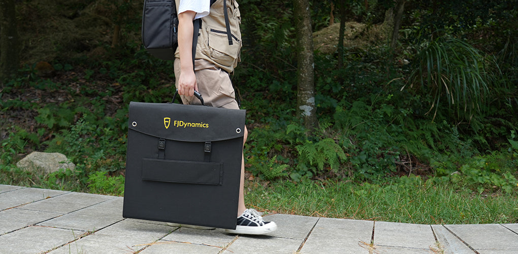 Az FJDynamics 200 W-os napelem panelje az FJD POWERSEC MP2000 hordozható erőműhöz készült.