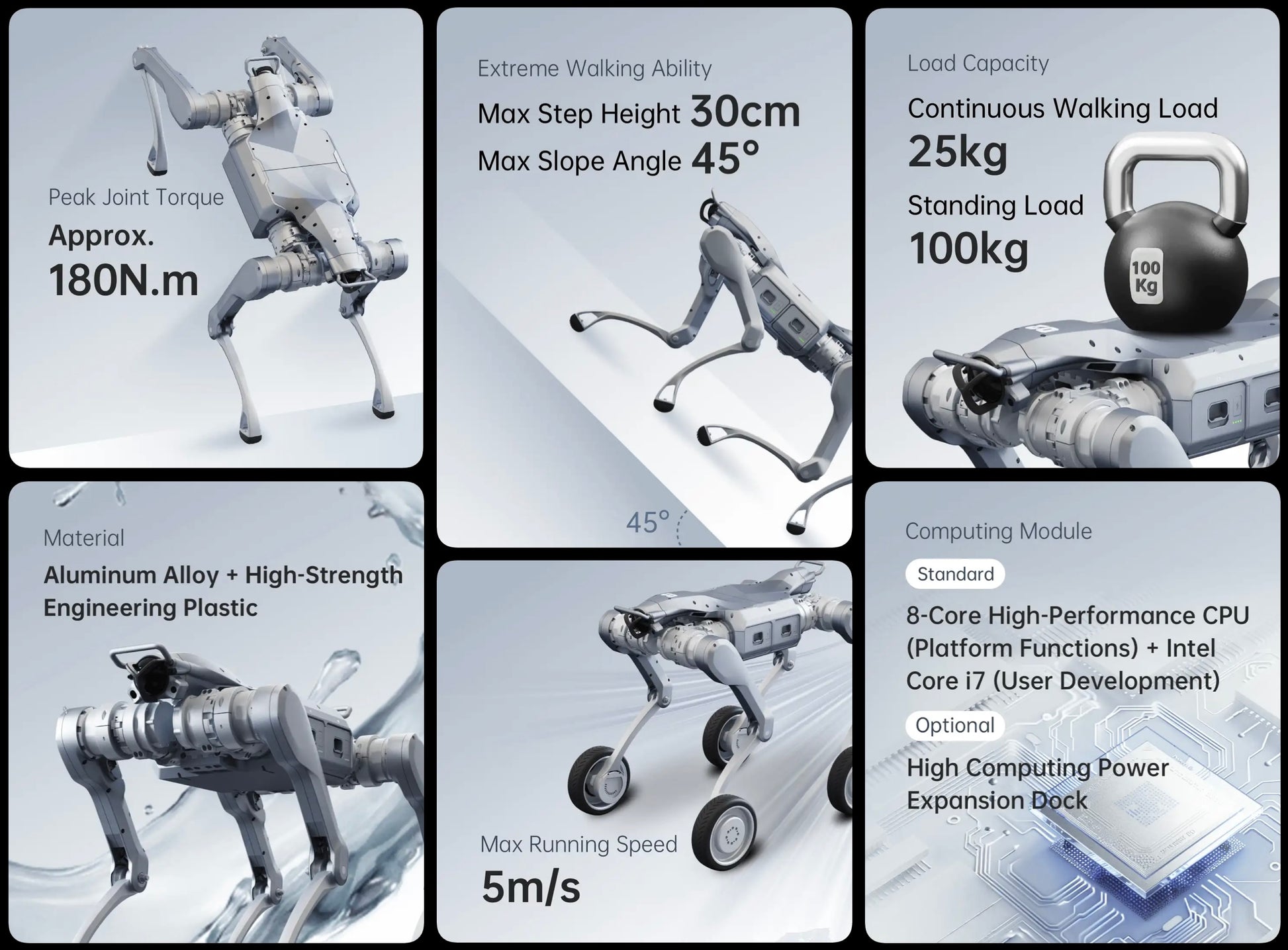 Szabadságfokok: 12 ízület (DOF) – nagy mozgékonyság, ipari motorokkal (~180 Nm nyomaték) és kereszt-görgős csapágyazással.